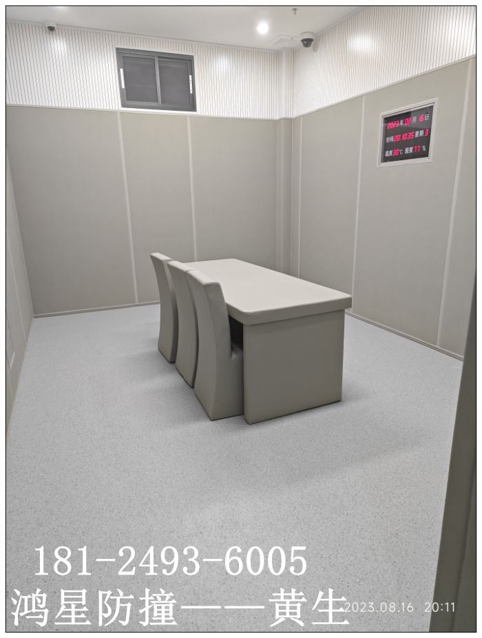 談話(huà)室軟包防撞墻面材料廠家審訊室防撞軟包是按照基材成分劃分的一種墻面獨(dú)特建筑材料,其主要材料有阻燃B1級(jí)、環(huán)保E0級(jí)的高密度發(fā)泡聚乙烯棉,PU阻燃皮革,其中聚乙烯擠塑棉的特性功能具有防撞、防火、環(huán)保、抗撞擊、回彈性、耐磨耐刮、防水等,作為紀(jì)檢委談話(huà)室建設(shè)領(lǐng)域的軟包品種,廣泛應(yīng)用于辦案區(qū)談話(huà)時(shí)防撞擊損害安全防護(hù)以及室內(nèi)外的噪音吸收。