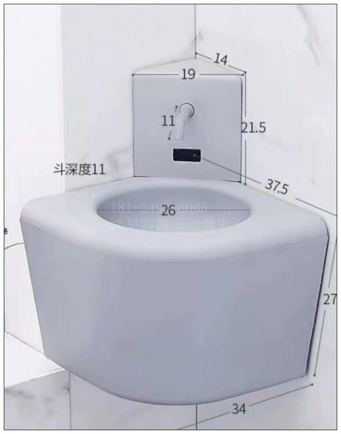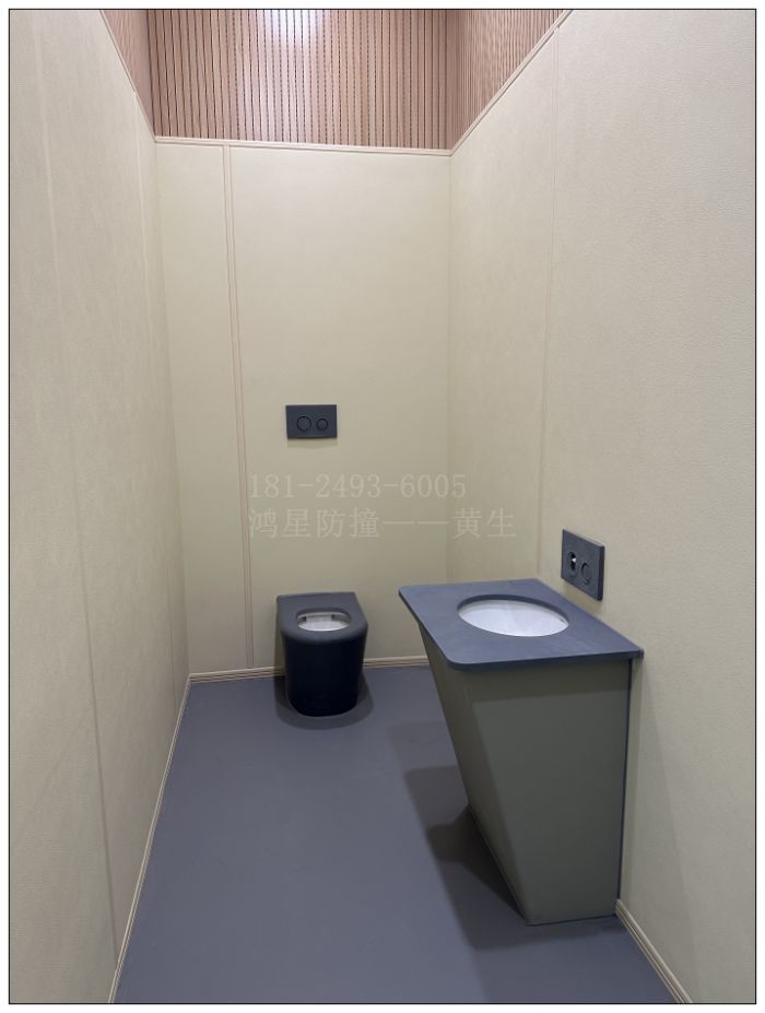 談話室內(nèi)部獨立衛(wèi)生間,是全部覆蓋硅膠防撞鑄模,洗手臺規(guī)格為690*490*800mm,馬桶規(guī)格為540*400*400mm,