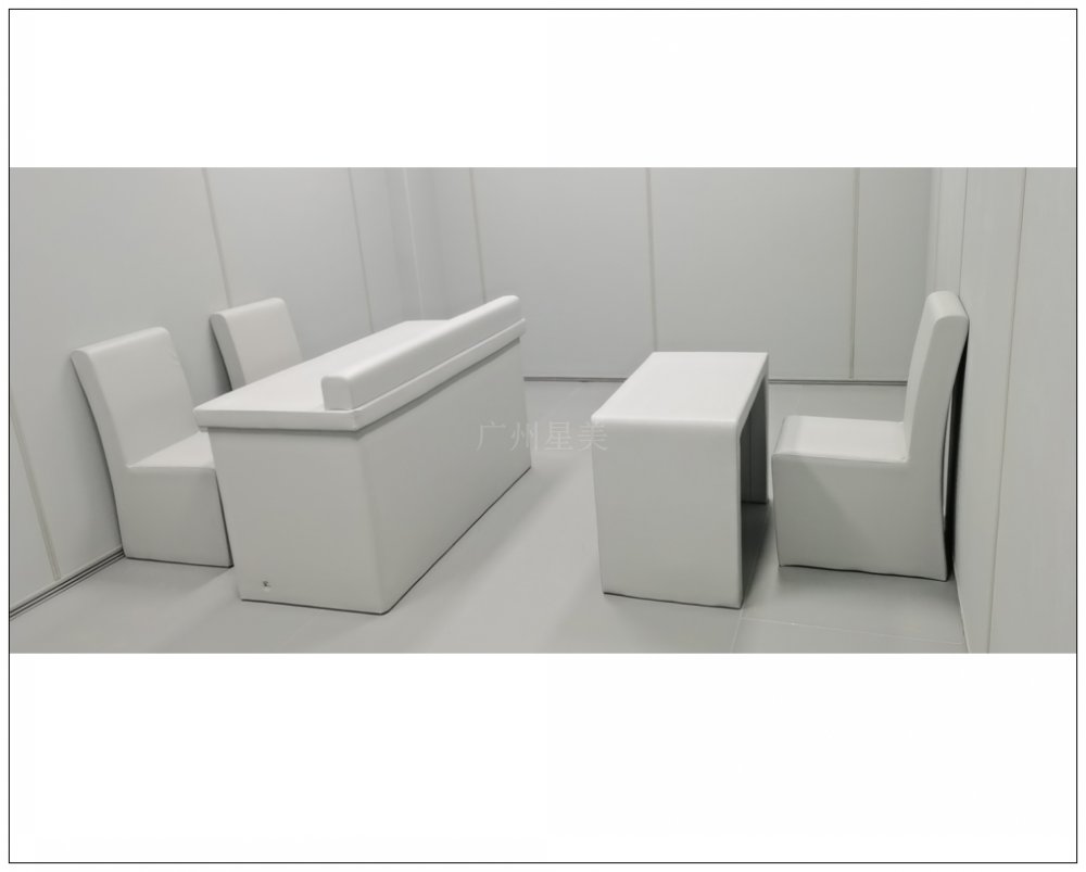 工字腿談話桌(1600900760)桌面加厚至40mm,三邊防撞包邊延伸至桌腿,承重達(dá)200kg;硅膠洗手臺(tái)(690490800)集成隱藏式檢修口與機(jī)械按壓出水系統(tǒng),柜體采用阻燃膠合板+硅膠防撞層,邊緣圓滑處理避免磕碰?。