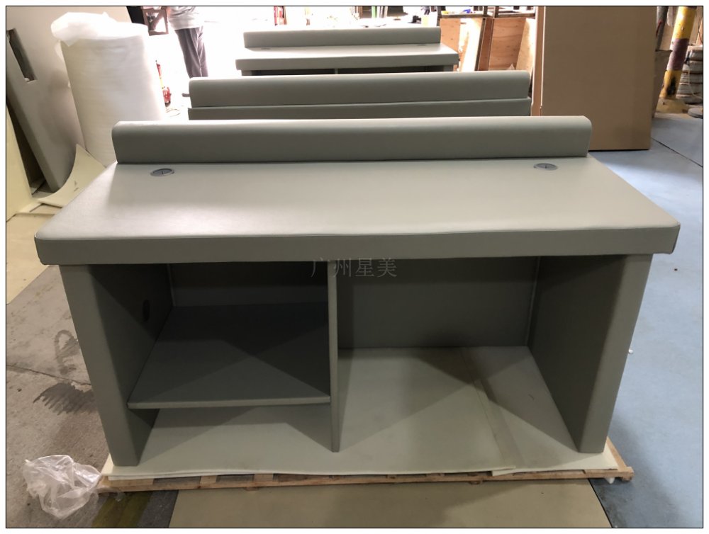?模塊化軟包?:采用1250*2450標(biāo)準(zhǔn)尺寸聚乙烯棉基材,厚度覆蓋20-40mm梯度需求,表面覆合0.8mm大荔枝紋阻燃皮革,通過無膠復(fù)合工藝消除甲醛隱患?。