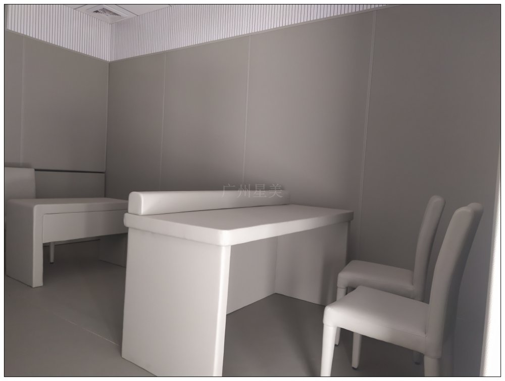 環(huán)保性能是另一大亮點。所有材料均不含甲醛及有害物質(zhì),達到環(huán)保E0級標準,從源頭上保障空間空氣質(zhì)量。配套家具如防撞床、加重談話椅、三邊防撞桌等,均以阻燃膠合板框架為基礎(chǔ),覆蓋阻燃人造皮革與高密度聚乙烯棉,兼顧防火與緩沖功能。整裝化設(shè)計實現(xiàn)“即拆即用”,例如棕墊床、醫(yī)療床及硅膠洗手臺等設(shè)施,均預(yù)先組裝完成,大幅提升安裝效率。