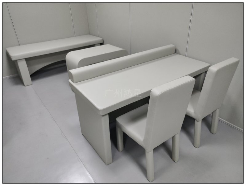 桌椅需進行加重處理,防止被談話人移動或推翻;椅子需加裝鎖具固定于地面,增強穩(wěn)定性。
