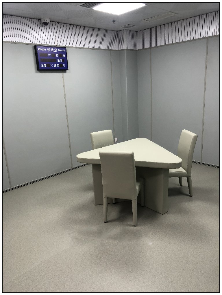 1審訊室/詢問室:防止嫌疑人利用桌椅自殘或攻擊辦案人員,抵抗暴力破壞,便于清潔。