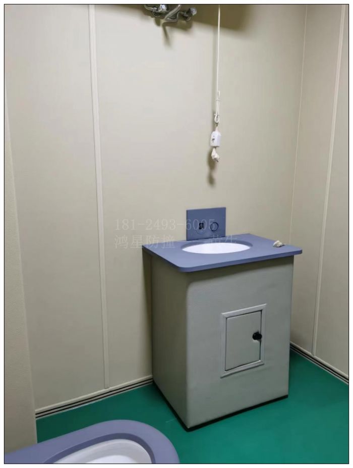 紀(jì)委監(jiān)委談話室留置室衛(wèi)浴間里的安全軟包馬桶及洗手盆是鴻星建設(shè)采用鑄模定制生產(chǎn)配套的硅膠套,將其包裹于法恩莎定制款的馬桶,從而達(dá)到防撞防水的效果。